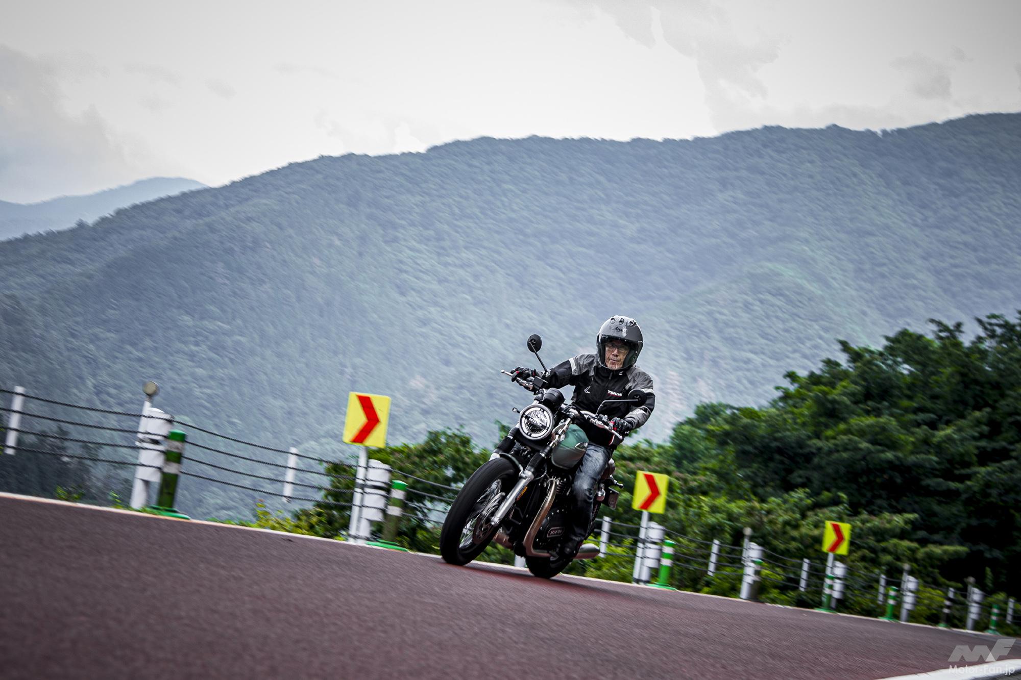 乗り始めから重いと感じられた車体だが、それは決して欠点ではなく、色々な動作や挙動にゆっくりと落ち着きが感じられる。加えて前述のエンジンキャラクターが上手く融合している点が印象深い。