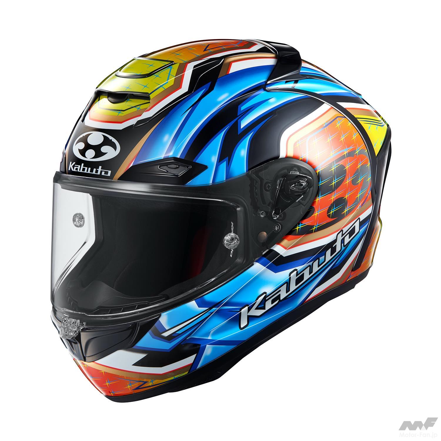 レースレベルのライディングにおいて、ライダーにかかる負荷を軽減すべく開発された、オージーケーカブトの新たなフラッグシップフルフェイス「F-17(エフ・イチナナ)」。メインコンセプトを「全方向型エアロダイナミクス」とし、オージーケーカブトが培ってきたエアロダイナミクスのノウハウをさらに次のステージへとアップデートさせた新機能が搭載されている。