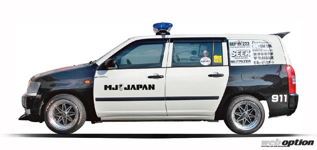 おそらく世界に唯一であろう、プロボックス&サクシードに特化したカスタムショップ“MJジャパン”。独創的なエアロや内装の小物など様々なオリジナルパーツを開発しているが、その集大成的な存在がこのポリス仕様のプロボックスだ。