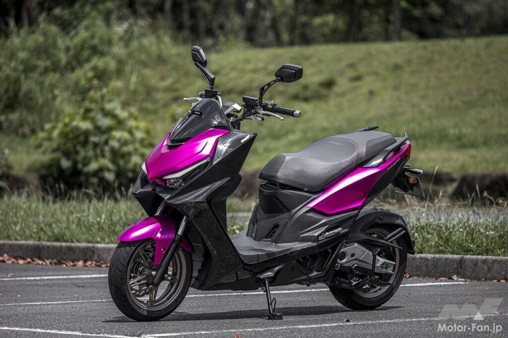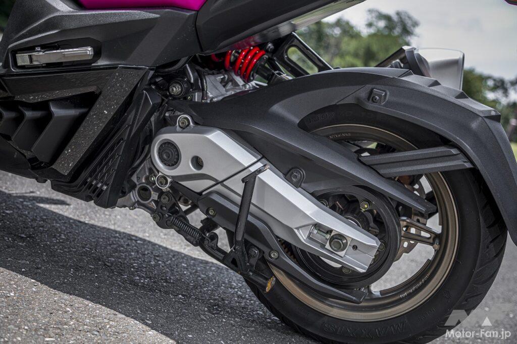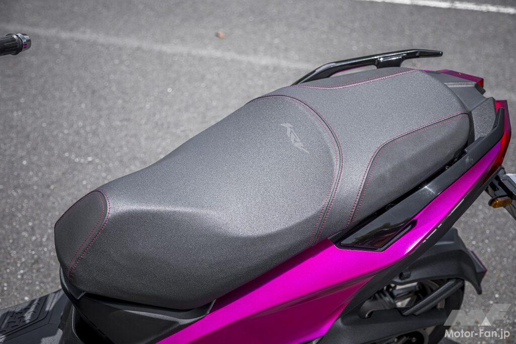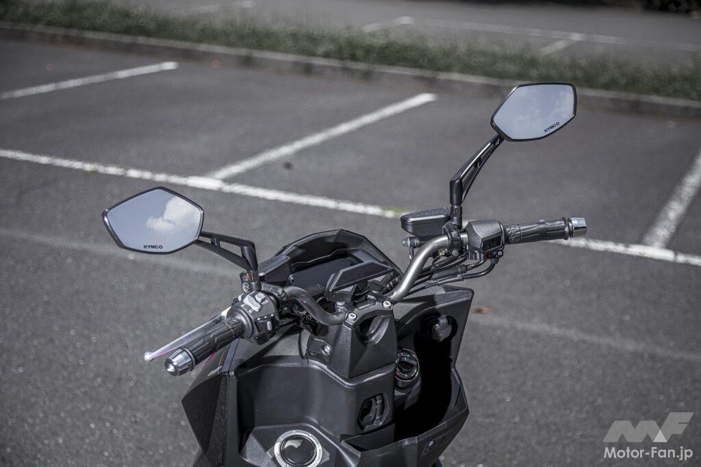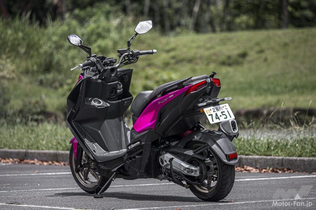 シートに座るというポジションはスクーターのそれです。アップハンドルによってもたらされるリラックスした上体も違和感がありません。フラットフロアなので乗降性が良いのも、ライダーの体格に関係なく使いやすい部分です。ただし足つき性はあまり良くありません。シート高は795㎜ということですが、足を下ろしたときに開き気味になるので、結果として足が着けにくくなっています。感覚的には欧州製のスポーツスクーターに近いといった印象を受けました。