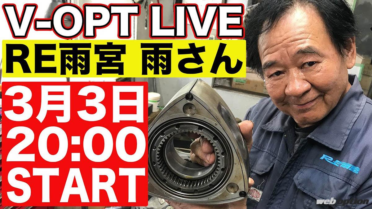 自動車ニュース カーライフ 「3月3日20時よりライブ配信決定!」RE雨宮の雨さん77歳記念スペシャル配信を見逃すな!! 2023.03.01 16:00 この記事の画像をもっと見る(全4枚) 連載V-OPT(動画) INDEX雨さん本人がチャット欄の質問に回答!誕生日当日の20時よりライブ配信スタート!! 雨さん本人がチャット欄の質問に回答! 誕生日当日の20時よりライブ配信スタート!! 2023年3月3日、ロータリーチューンのレジェンドRE雨宮代表の“雨さん”こと雨宮勇美氏が77歳の誕生日を迎える。それを記念したライブ配信が、誕生日当日の20時より開催されることとなった。 配信の内容は、V-OPT&WEB OPTIONによる公開生取材に加えて、雨さん本人からチャット欄に寄せられた質問への生回答などなど…。ここでしか聞けないエピソードトークも多数! 雨宮ファンは配信スタートの3月3日20時を全力待機せよ! 連載 V-OPT(動画) 改造車 2023.09.10 「HKSドラッグスープラ伝説」ゼロヨン6秒台を目指した1500馬力の直線番長!【V-OPT】 改造車 2023.08.22 「ラーマン山田が750馬力のパリダカ仕様トラックに試乗!」究極の日野レンジャーが凄すぎる!!【V-OPT】 改造車 2023.07.10 「たったの1000メートルで300km/h突破!」ラーマン山田のフルチューンGT-R加速テスト【V-OPT】 カーライフ 2023.06.27 「ドリフトを始めたい人は必見!」NOB谷口のドリフトレッスン超初級編【V-OPT】 カーライフ 2023.06.21 「変態的AW11をラーマン山田が試す!」ノーマルルーフ+フェンダーミラーのAT仕様はヤバすぎる【V-OPT】 カーライフ 2023.05.24 「ルール無用!クラッシュ上等!」伝説の自動車サッカー前半戦【V-OPT】 連載の記事一覧へ カーライフの関連記事