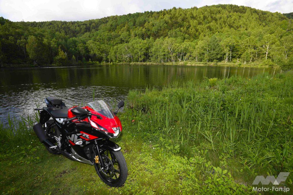 ではGSX-R125がどんな用途に適しているのかと言うと、ワインディングロードがメインのショート……に限らず、ロングすぎないツーリングだ。そういう使い方なら、身体の痛みを感じることなく、スポーツライディングの醍醐味が心行くまで満喫できるに違いない。ん?、その表現だとスーパースポーツ全般を評価しているみたいだが、今回の試乗で僕は、125ccクラスならではの美点、そして同じ排気量のライバル勢とは一線を画するGSX-R125の乗り味に、しみじみ感心することになったのである。