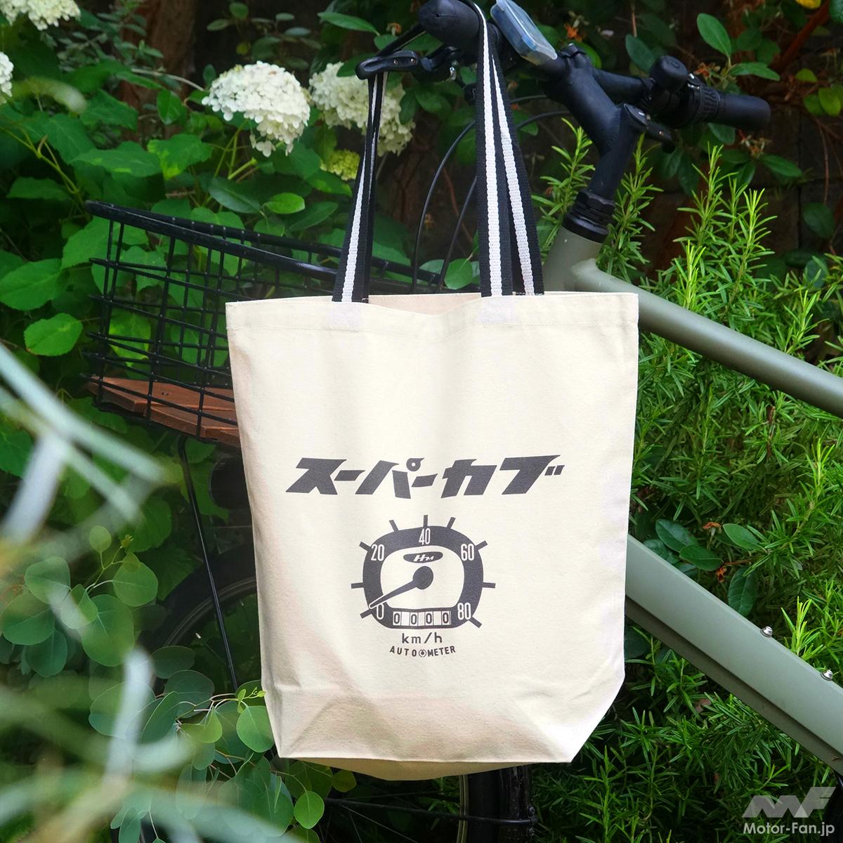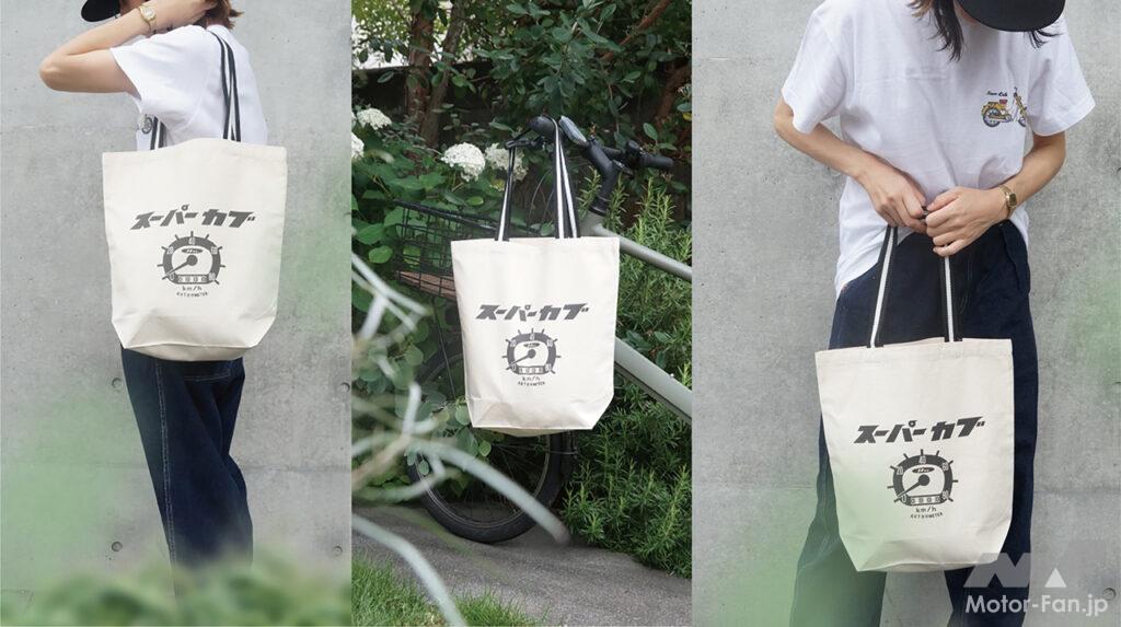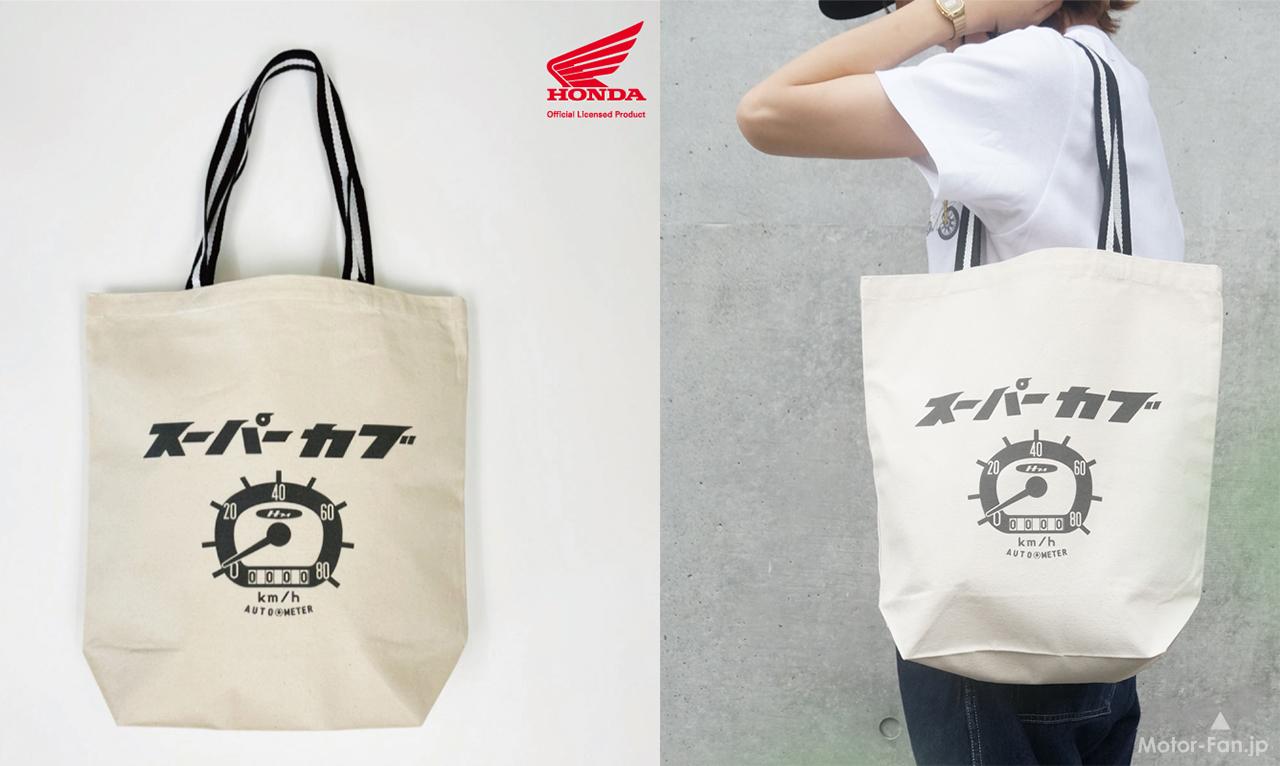 懐かしいスーパーカブのロゴとメーターのイラストが入った、ビッグサイズのトートバッグが新発売。スーパーカブがゆるいタッチで描かれた少しレトロな雰囲気のトートバッグは、マチつきで大容量。エコバッグとしてはもちろん、レジャーやジム用バッグとしても使いやすいサイズ感が特徴。
