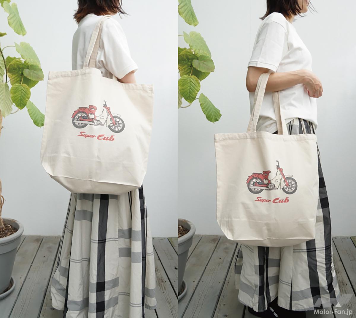 シンプルで持ち手が長く、ゆったりと肩掛けできるストラップを採用し、男性でも肩掛けしやすい仕様に設計。素材は環境に配慮した、日常使いしやすいキャンバス素材の無漂白コットンを採用。本田技研工業株式会社公認のライセンス取得済み。