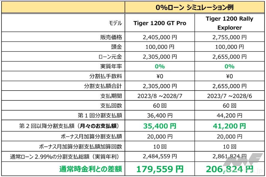 Tiger 1200 ファミリー に0%の特別金利ローンが登場!