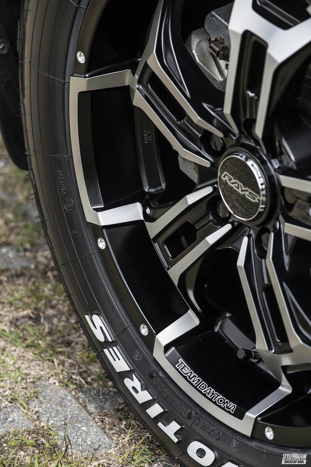 デイトナが提案するのは王道サイズから、さらに1〜2インチアップする18インチ。この違いは決してわずかではない、確実にライバルと差をつけることができる違いだ。4WD系カスタムではタイヤサイズを優先することが多く、小径ホイールの文化が長く息づいて来た。デイトナはここに切り込んだ。デカイはエライというワケだ。