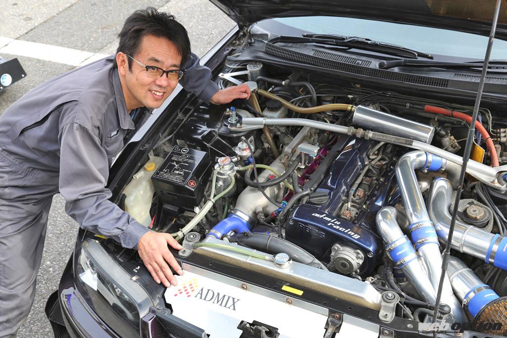 「色々と意見はあるでしょうが、僕が感じるところではGT-RをGT-Rらしく乗って楽しむには550psくらいのパワーを持たせてやりたいですね。FRのシルビアなら400psくらいの感覚ですが、GT-Rはボディが同時期の他車種よりシッカリしていることと、4WDなのでそこに喰われるパワーを補ってやりたいですから」と、GT-R&RB26DETTについて熱く語るのは、エンジン作りのスペシャリストである“アドミクス”の本嶋代表。