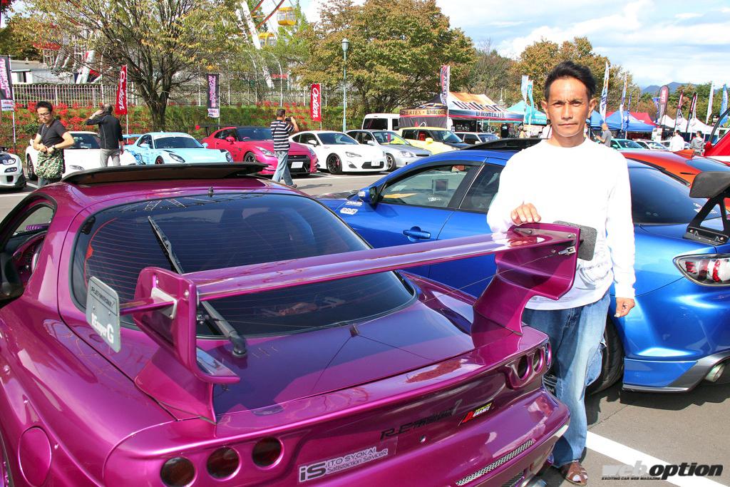 車高調はRE雨宮ニューストリートダンパーキットVer.2で、ブレーキにはRE雨宮仕様のエンドレスキャリパーを投入。ホイールはエンケイRP-F1(F8.5J×17 R9.5J×17)となっている。
