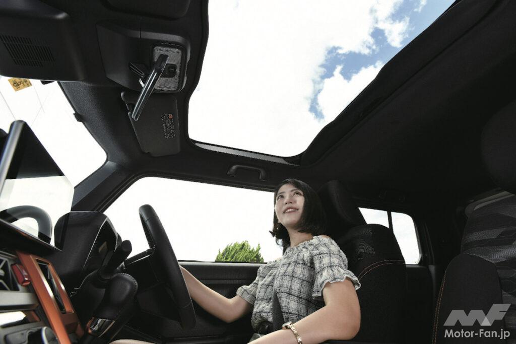 プラットフォームはタントと同じDNGAの考え方に基づくタイプで、全高が1600mmを超える軽自動車としては、操舵したときの反応が正確だ。乗り心地は少し硬めで、路上の細かなデコボコを伝えやすい。段差を乗り越えた際の突き上げ感は小さいが、街なかを40km/h前後で走る状況で不満を感じないか、試乗車で確認したい。タフトを選ぶときの決め手はスカイフィールトップだろう。これを全グレードに装着したメリットは大きい。前述の通り後席がシンプルだから、2名で乗車して、荷物を積む用途に適する。