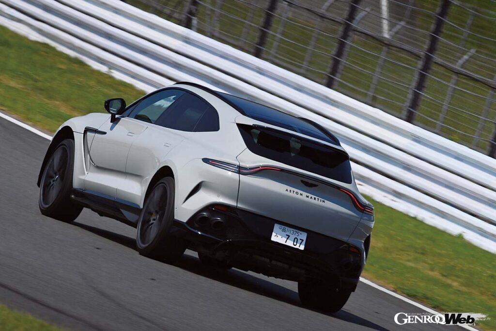 スポーツ+モードでは車高が15mm低くなり、フロントへの駆動力配分とESPの介入が少なくなる。前後駆動力配分は、550PS仕様が時々0対100になるのに対して、DBX707はテレインモード以外ほとんど0対100だという。基本的な性格はRWDに近いが、路面や運転状況、ドライブモードによって550PS仕様同様に瞬時に47対53に変化し、安定性の高いAWDになる。今回インストラクターを務めていた懇意のレーシングドライバーも言っていたが、じわっと踏むとコーナーの立ち上がりはドリフトが維持しやすい。反面、踏み込むと瞬時にトルクが前輪に配分されるので走り方は工夫が必要だ。