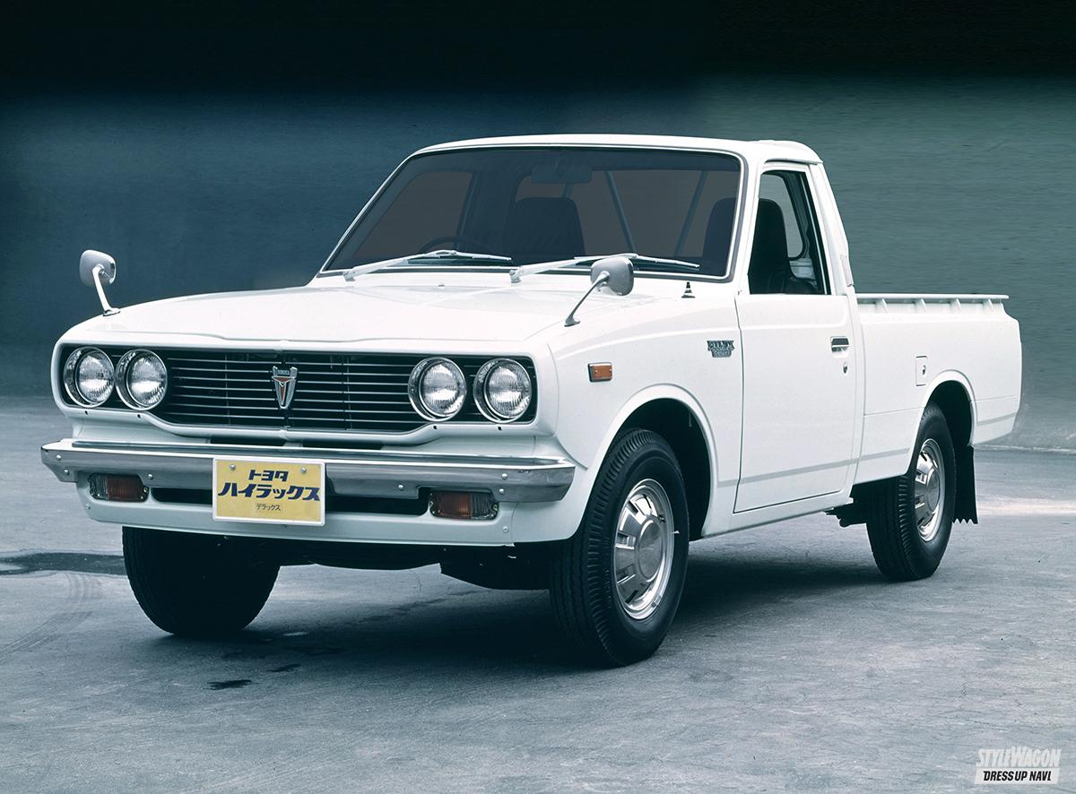 トヨタ車としてカローラの次に世界での販売台数を誇るのがピックアップトラックのハイラックス。初代登場は1968年。トヨペットのライトスタウト、日野自動車のブリスカの統合後継モデルとして登場したボンネットトラック。ちなみに名称は「高級な」「より優れた」という意味のハイと「贅沢な」「豪華な」のラグジュアリーの造語。よく言われるイワダヌキ目の哺乳類ハイラックスとは無関係とのこと。