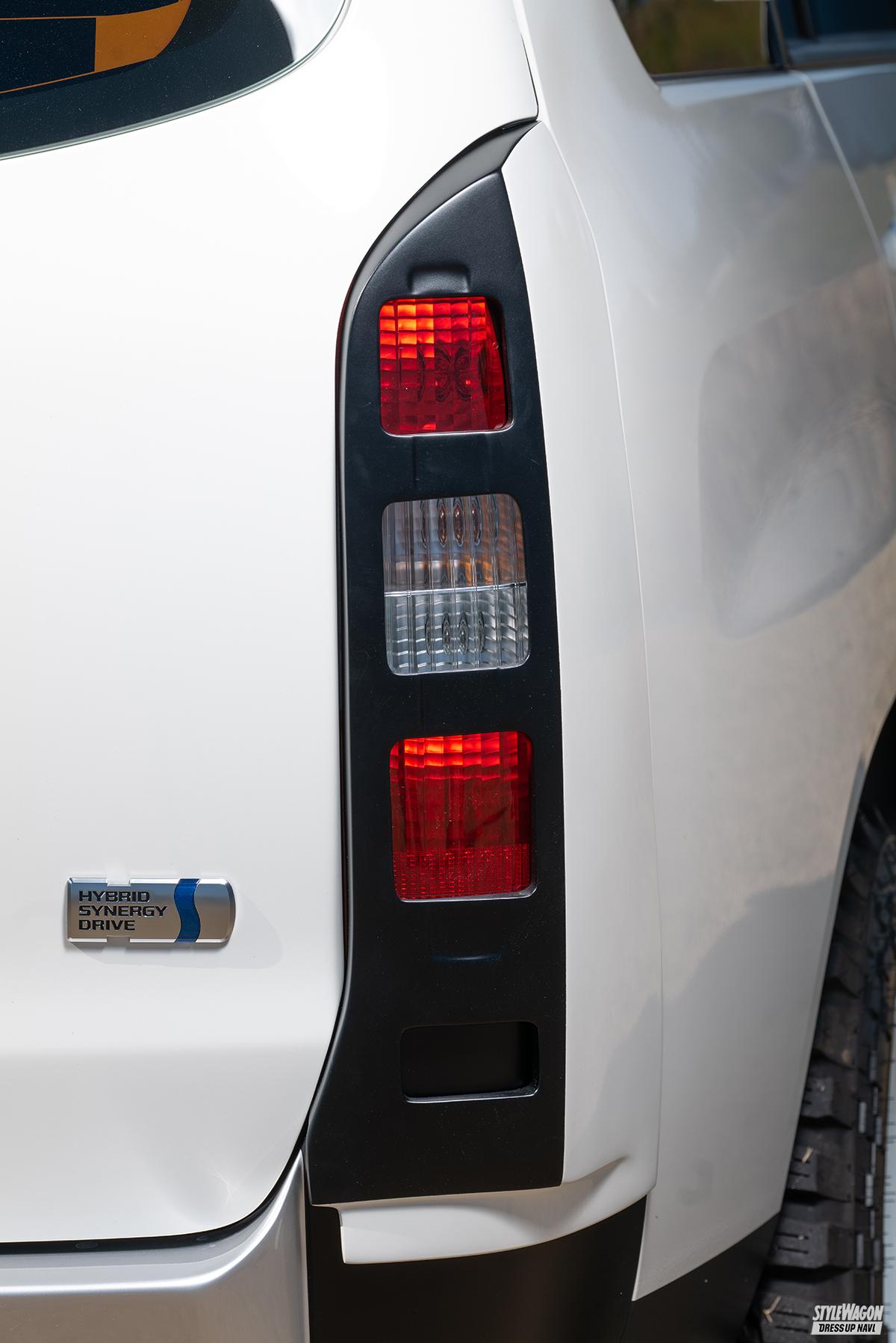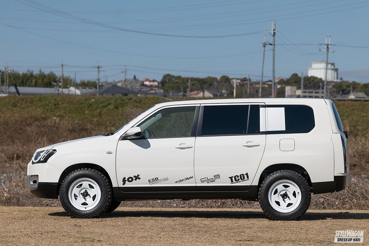 開発のキッカケはアゲたプロボックスがどことなくディフェンダーに近いと感じたられたこと。旬のアゲプロボックスだがスタイルのバリエーションは決して多くはなく、そんな中で映え度バツグンなこのディフェンダールックは目立ち度も最強。パーツ構成がシンプルだから、ここからさらなる深化も狙いやすく、自分流の味付けができる余地が残されるのも魅力的。ライバルに差を付けらたいのなら、ぜひ。