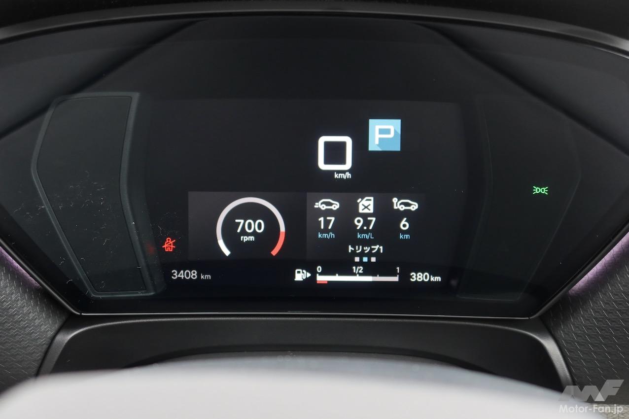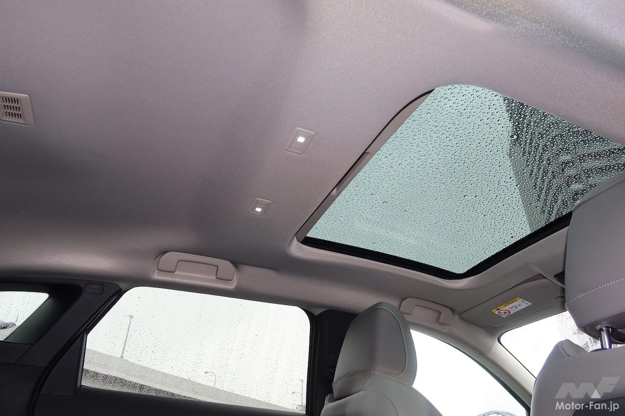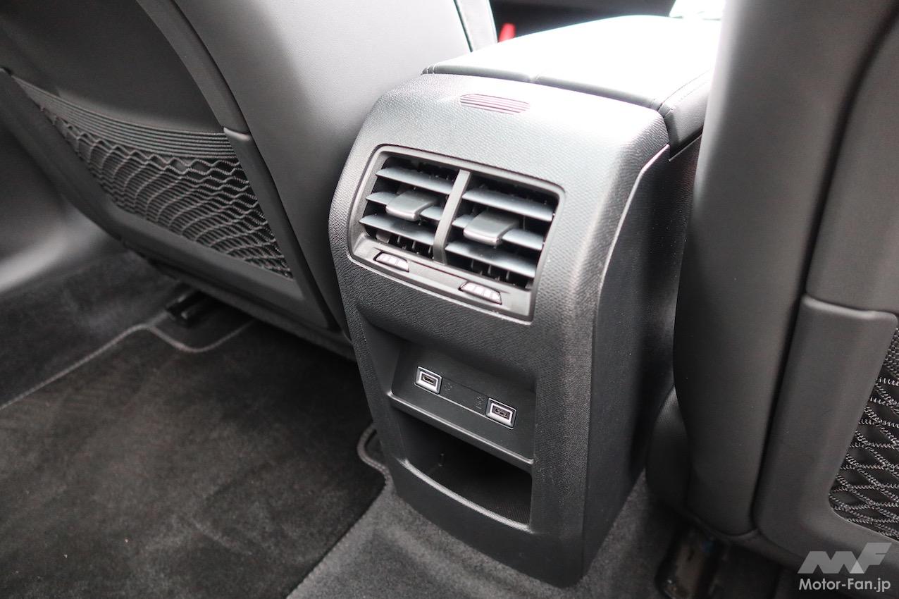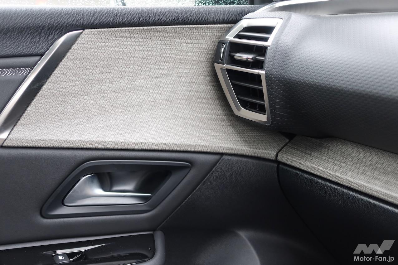 ダブルシェブロンのパターンはインストルメントパネルとその下の木目調パネルにも施されており、ドアトリムにはシートの肩口と同様に連続パターンのダブルシェブロンが刺繍されている。見渡す限りダブルシェブロンのオンパレードだが、映画のキャラクターで満たされたホテルの一室のような暑苦しさはなく、上質なおもてなしの心づかいを感じる。とくに、光の加減で表情を変えるシートのパターンは秀逸だ。
