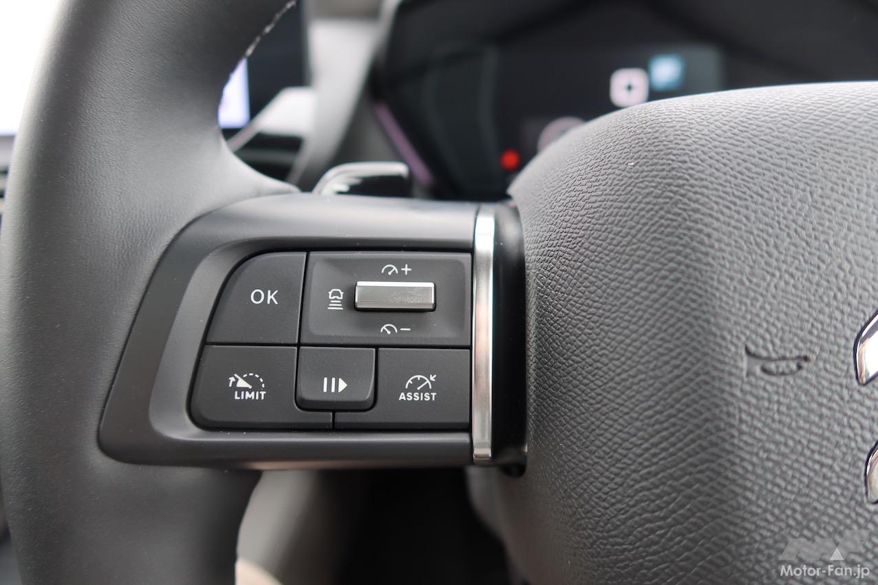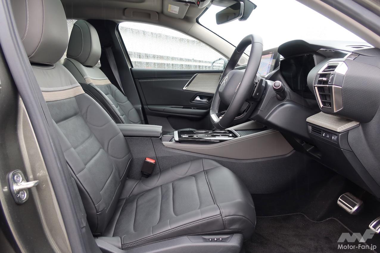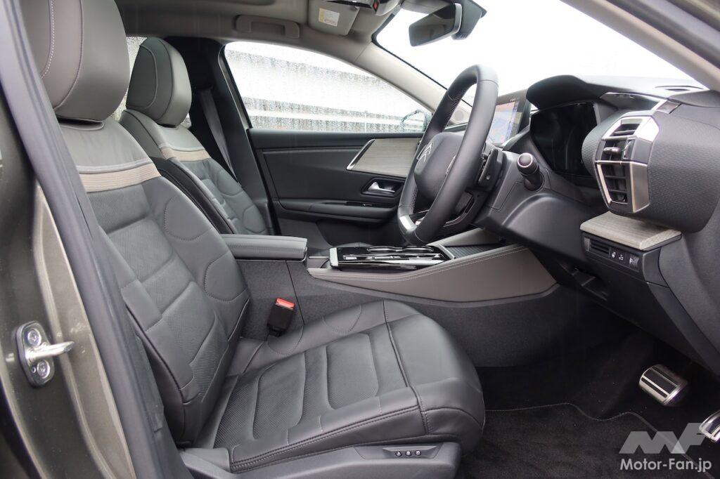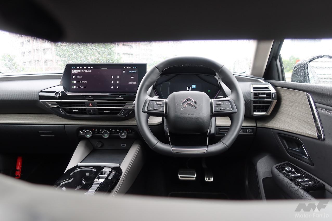 上下をカットした変形スポークに四角いホーンパッドを組み合わせたステアリングホイールと、黒い縁取りが際立つ大型のタッチスクリーンはC4と共通したデザインだ。センターの空調吹き出し口やエアコンの操作系、コンパクトにまとまったシフトセレクターもC4と共通である。タッチスクリーンはフラッグシップらしく、C4の10インチに対して12インチと大型だ。