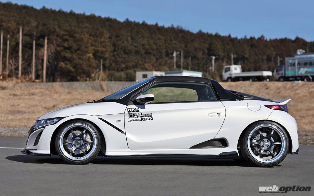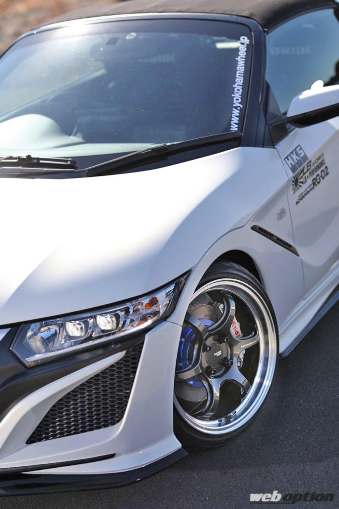 その際に、S660へ対応するPCD100の4ホールタイプも用意され、撮影車両のリバティウォーク製エアロをまとったS660では、フロントが16インチの7.0J+42、リヤには17インチの8.0J+35、カラーはマシニング&ブラックガンメタリックをセットアップ。タイヤサイズはフロントが165/45-16、リヤは195/40-17というチョイスだ。
