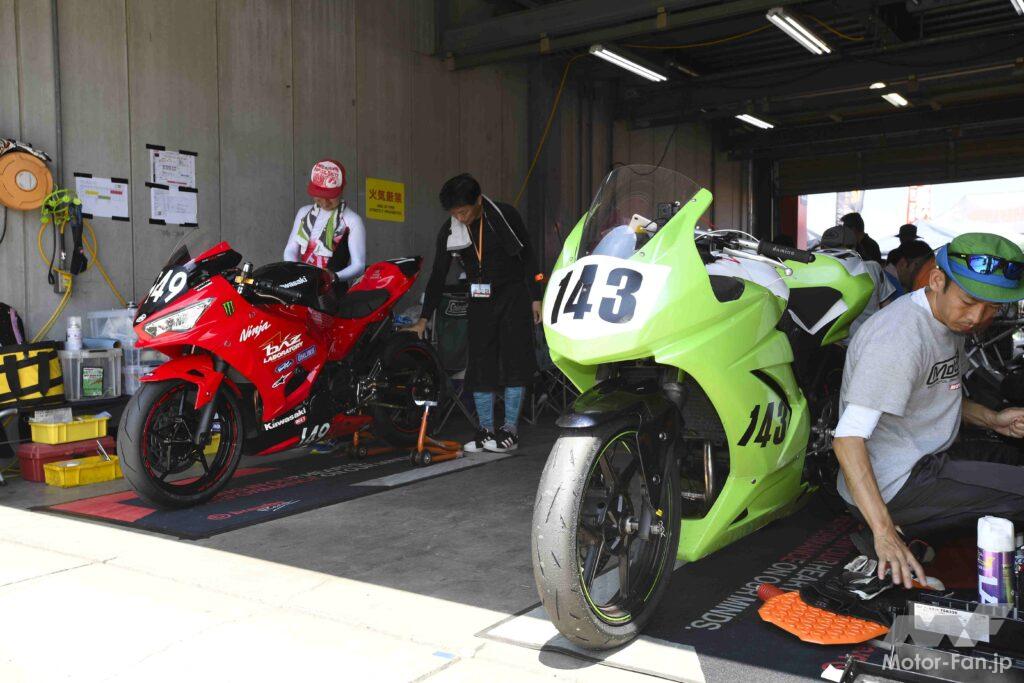 そんなもて耐の興味深いところは、誰もが……とまでは言わないけれど、多くのエントラントに上位進出のチャンスがあることだろう。何と言ってもこのレースは、Brave、オープン2気筒水冷、空冷、オープン単気筒水冷、空冷、NST-Ninja、NST-CBR(250R)、NST-(YZF-)R25、NST-G310R、NST-ZX(-25R)、NST-VTRと、計11種類ものクラスを設定し、それぞれで順位づけが行われるのだから。もっとも、総合順位・総合優勝は存在するし、台数が規定に満たないクラスは他に統合されるのだが、こういった豊富なクラス設定は、エントラントのヤル気や車両のバラエティ感の維持に大いに貢献しているに違いない。