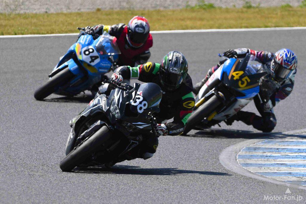 クラストップの動力性能を考えれば当然のことだが、近年のもて耐の最大勢力はホンダCBR250RRで、2023年は、初日の3耐に13台、メインイベントの7耐には24台がエントリー(全出走台数は、3耐:34台、7耐:65台)。中でも圧倒的な速さを発揮したのは♯1ベスラレーシングで、2019年と2022年に続き、3度目の総合優勝を達成した。