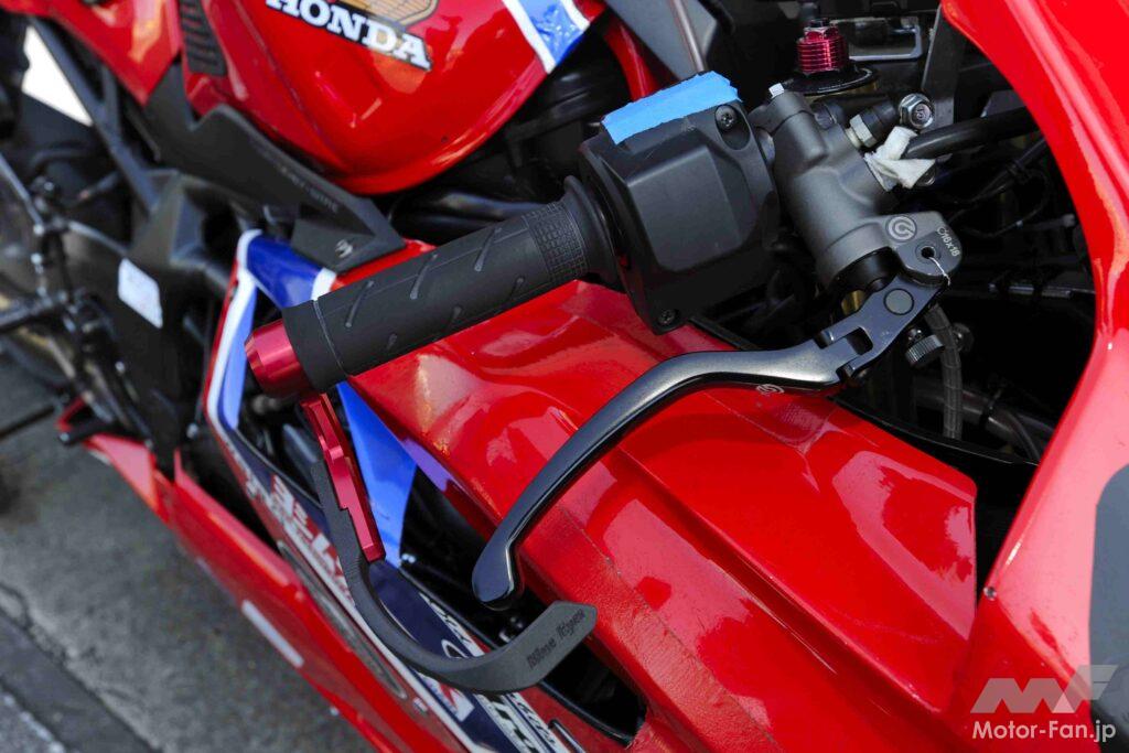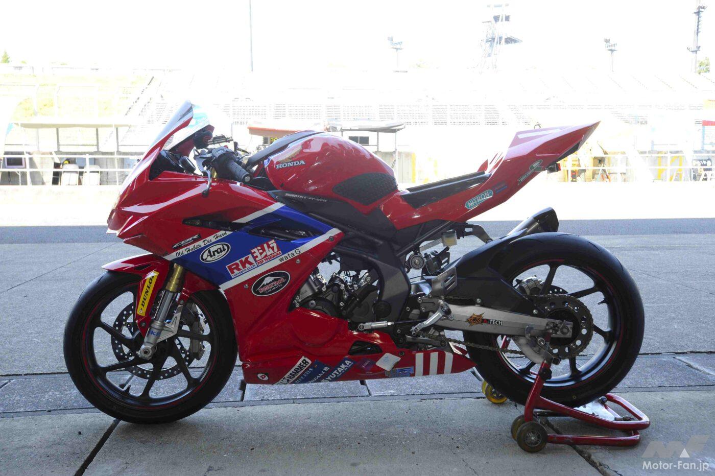 中村エンジン研究所のCBR250Rは、HRCが2014~2021年に販売したレースベース車で、前後ショックやライディングポジションパーツは変更しているものの、基本的にはノーマル状態を維持している。パワーユニットに関しては、年1回のペースでオーバーホールを行っているそうだ。