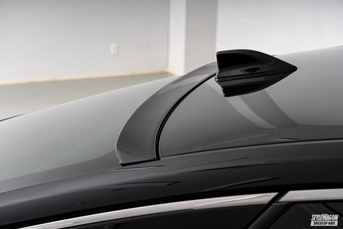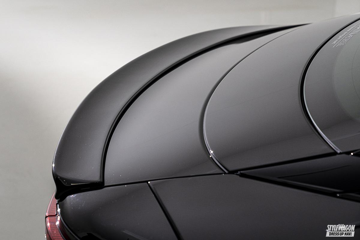 前後ともにシンプルなハーフスポイラー形状。フロントはリップから両サイドへ向けて駆け上がるような立体造形が採用されるなど、さり気なく躍動感をプラスするようなデザイン。サイズも控えめだが適度な量感も備わるため、クラウンに相応しい重厚なムードも獲得できる。