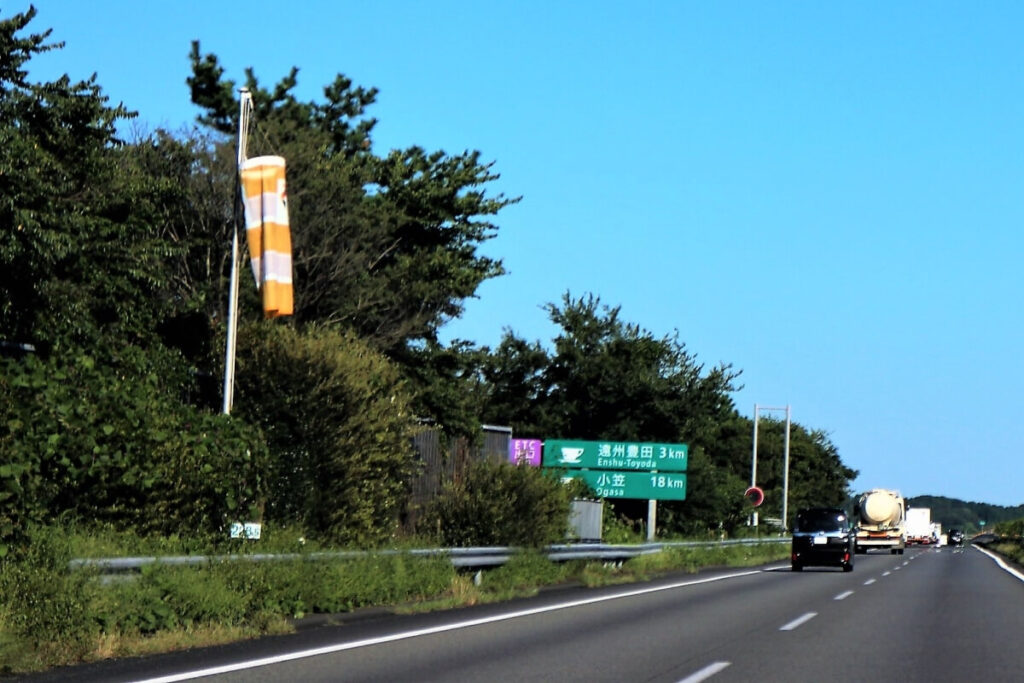 高速道路は周囲の地形によっても風速が大きく変化します。また移動距離や移動時間が長いこともあって、途中で急に風が強まることもあります。高速道路の走行時は、吹き流し見かける度に角度をチェックする癖をつけておくとよいですね。