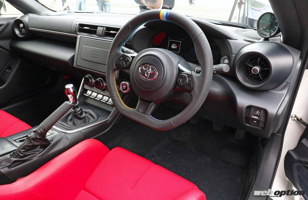 足回りは『パフォーマンスダンパー』を軸に構築。スプリングレートは暫定で前後8kg/mmをセット。ZN6型とは車重やトレッド幅が異なるため、減衰力やスプリングレートのセッティングは今後GR86用に煮詰めていく予定だ。デフは純正トルセンのままだ。