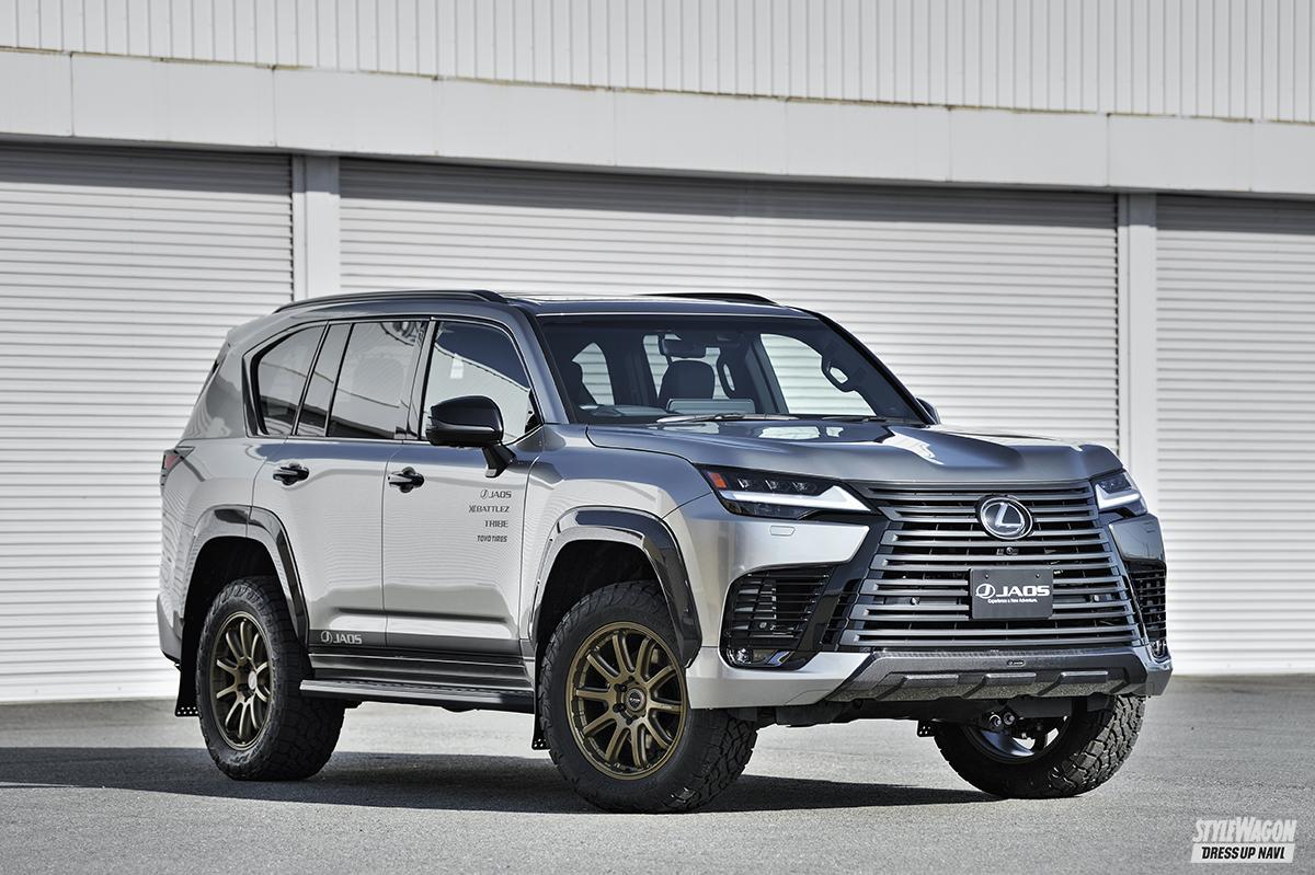 レクサスLXはランドクルーザーのレクサス版である……というのは多くの人の認識ではないだろうか。それは確かに間違いではないのだが、新型となったLXはよりレクサスらしい車両になるべく味付けがなされており、それはオンロードだけでなく、オフロードでも楽に、上質に走り抜けることができるように、という想いが込められている。それを如実に表すのが、新型LXに新たに設定された「OFFROAD」という仕様だろう。今まではランドクルーザーと同等の走破性を秘めながらも明らかにオンロードで乗ることを意識したタイヤやホイール、エアロパーツを纏ってきたLXが、オフロードと銘打った仕様をリリースしてきたのである。これは見た目をオフロードテイストにまとめた小手先のものではなく、フロント、センター、リアの3つのデフロックを備え、悪路走行を見越した偏平率の高い18インチタイヤを履く本格的なもの。そんな本格的なモデルとしてリリースされたレクサスLX〝OFFROAD〟に対するジャオスのひとつの答えとして作り上げられたのが、このジャオススタイルということになる。レクサスのフラッグシップSUVという点は損なうことなく、惜しみなくジャオスイズムが投入されたこの1台は高級オフローダーとしての新たな指標となるだろう。