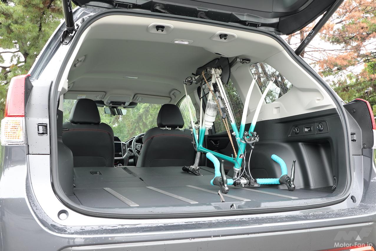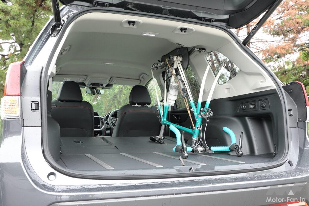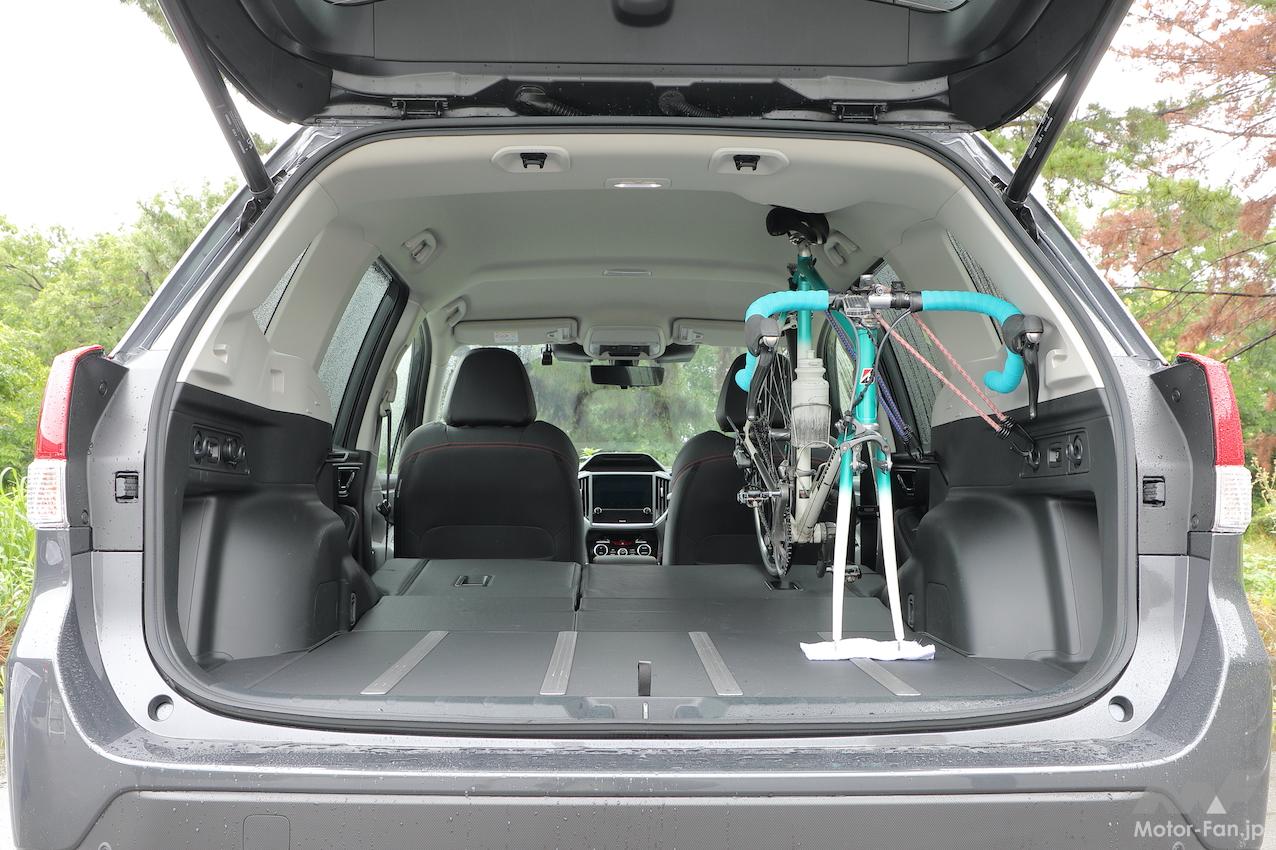 トラブルに即座に対応できるよう、バイクはルーフキャリヤに搭載しており、実際にはルーフに手の届きやすいレヴォーグが使用されているが、本企画の趣旨は、車内に積めるかどうかの評価。そこでレヴォーグではなく、フォレスターに登場願った。