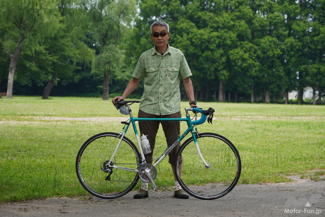 メカニズムを得意とするジャーナリストの安藤 眞氏は、40年以上も自転車を趣味とし、カングーに愛車を積んでサイクリングを楽しんでいる。身長181cm。フレームを購入して自分で組み上げた写真のロードバイクはサドル高が1mあるから、この自転車が載るクルマなら、アナタの自転車も積載できる可能性が高いはず。