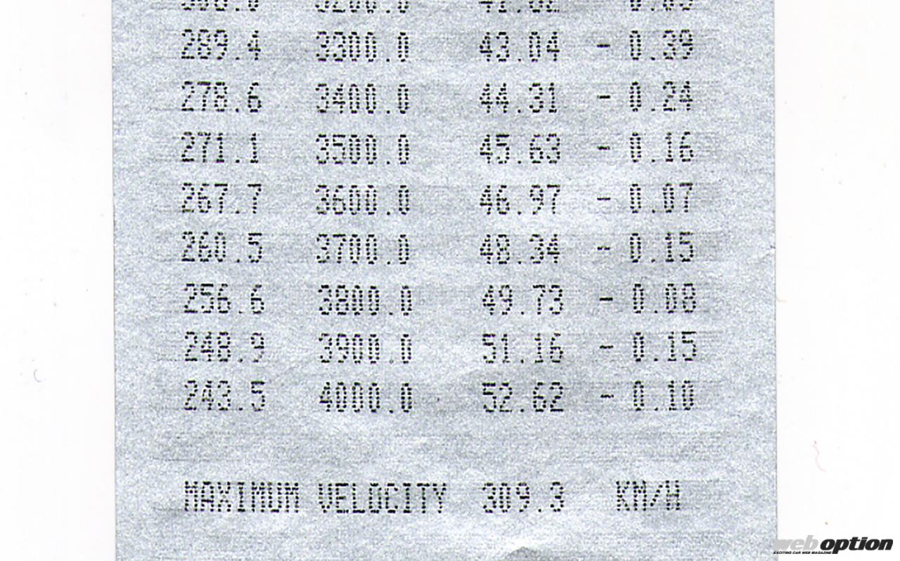 結果は衝撃的だった。テスト車両は250km/hを超えても怒濤の推進力を炸裂し続け、そのまま大台を突破。最終的に6速6800rpm近くまで回し切り、小野ビット計測で309.3km/hをマークしてみせたのだ。