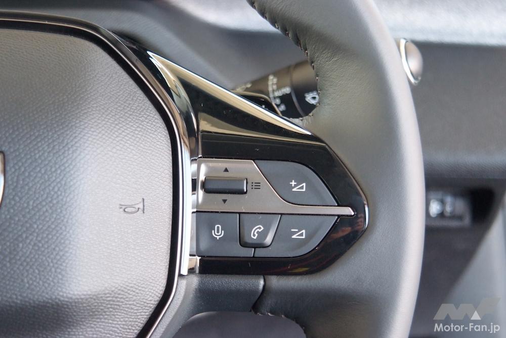 ステアリングはチルトに加えテレスコピックもできるのがありがたい。ただし、プジョーはステアリングの上からメーターを見る配置。これがi-Cockpitというヤツか。なので、ステアリングはそもそもあまり上にはできないし目一杯上げるとステアリングの上端がメーターの下端にかかるのが気になってしまう。メーター下端はプジョーのロゴがあるくらいでメーター自体の視認性は悪くならないので、ここはポジション重視でセッティングだ。