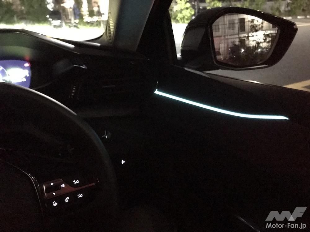 夜間のドア開閉時にはランプが足元まで照らしてくれる、最近のクルマのおもてなし。かなり明るいし、車内はもちろん地面まで照らされているので、足捌きも安心だ。