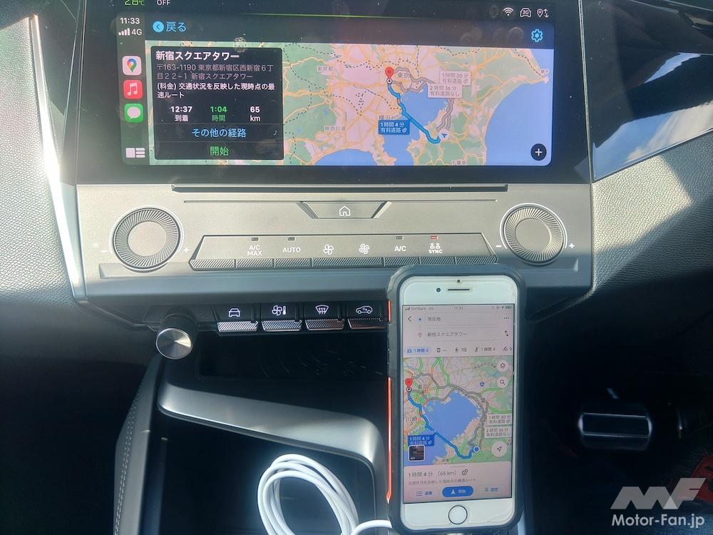 標準で聴けるオーディオはラジオのみ。もちろん、物理ディスクを入れる場所などない。実に今風だ。なので、スマートフォンをクルマに繋いでスマートフォン内の音楽データやストリーミングを流すことになる。
