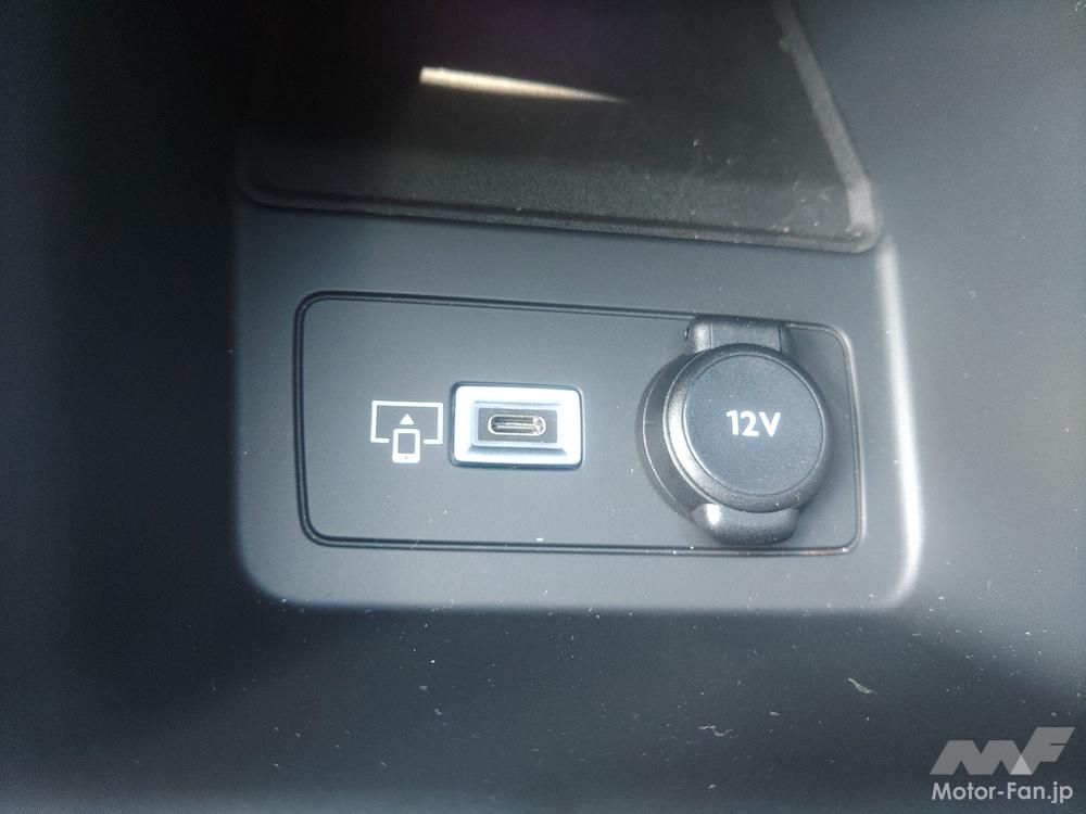 音楽に関しては、スマートフォンではなくデジタルオーディオプレイヤーやUSBメモリから直接再生できるのかも気になるところだが手持ちの機器がなかったので試すことはできなかった。最近はその辺りも全部スマートフォンを使うのかな。それと、インパネの右隅にSDカードスロットらしき穴があったのだが、これも何に使うのか確認できなかった。