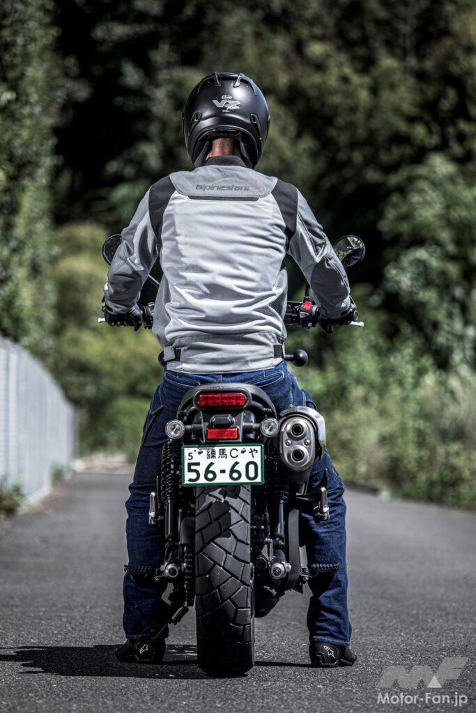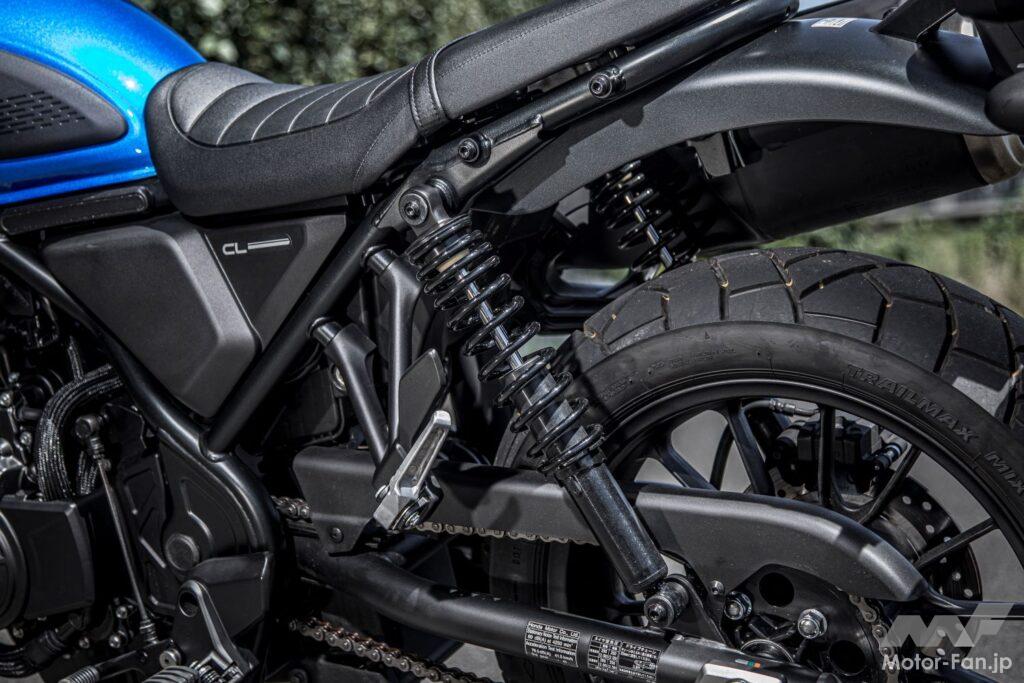 そしてそれは走り出しても同様だ。エンジンがとても良くできていて、極低回転域から素直なトルクがどんどん湧き出てくるおかげで、このルックスながら「けっこう速いぞ!」と思わせる加速を持っている。確かに重くはなったのだろうが、それでも車体に対してエンジンが完全に勝っている印象で、重量増を帳消しどころかむしろ余りあるパフォーマンスを持っていると言えるだろう。20kgも重いのにストリートでのキビキビ感も250版以上である。