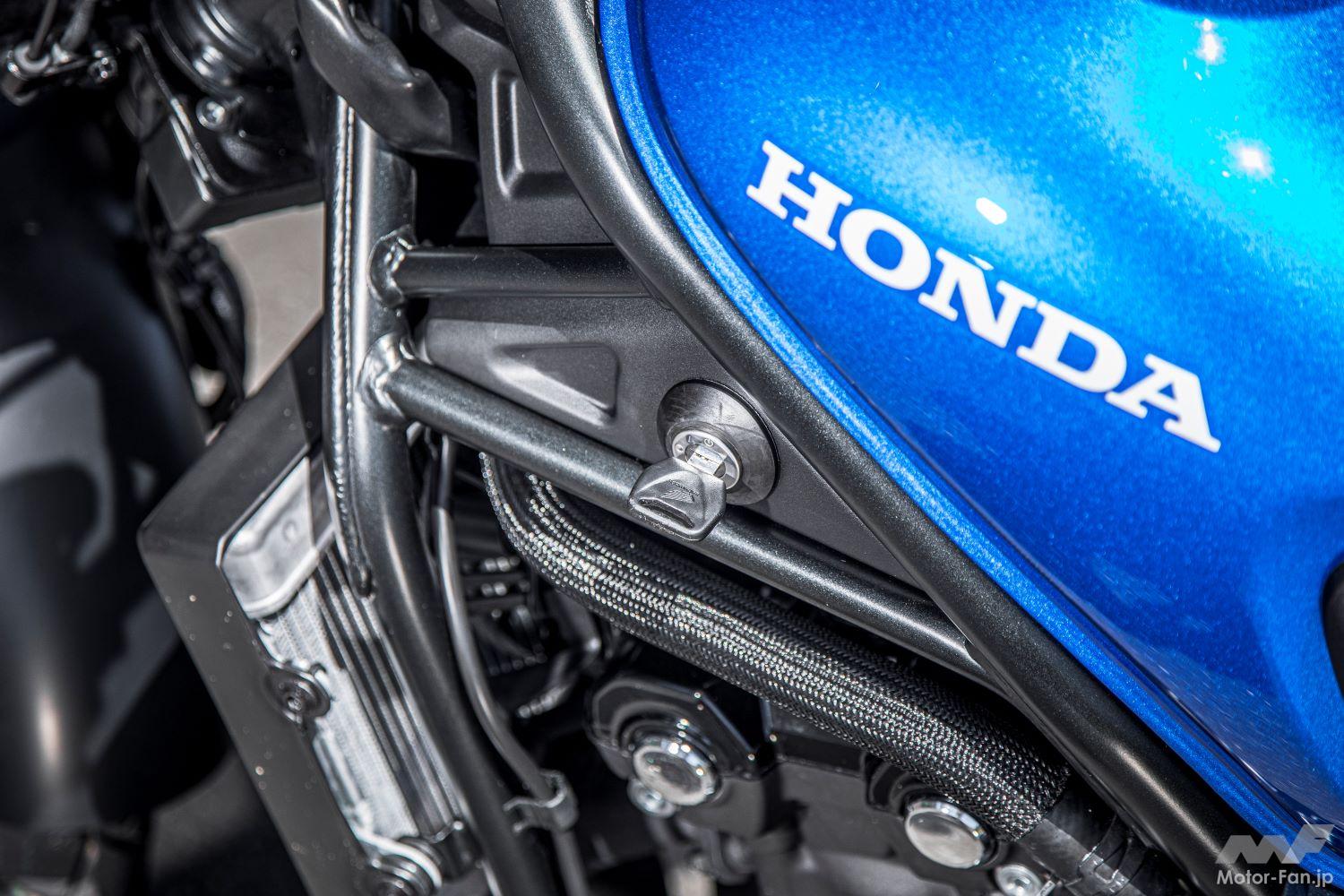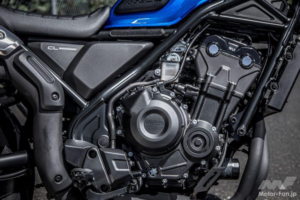 250との大きな違い、というか唯一の違いとも言えるエンジン。レブル500系列であり、国内で言えばCBR400Rや400Xといったバイクに400cc版が積まれた、あのパラツインユニット。CL500ではレブル500よりもわずかにファイナルをショートに振って活発な印象が与えられている。