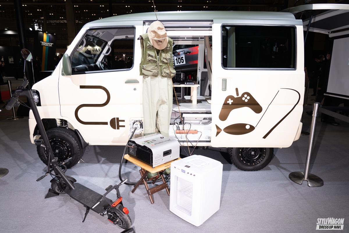 三菱自動車のブースは「次の時代、次の冒険を。」をテーマに、2023年5月発売となる新型車デリカミニのコンセプトカーをはじめ、デリカD:5、アウトランダーやekクロスEVなどの電動車、アジアクロスカントリーラリー参戦のピックアップトラック「トライトン」などを展示。環境に優しく、安全・安心な三菱車を広くアピールしていた。アウトドア人気の高い中、人気アウトドアブランド「コールマン」とコラボしたデリカミニや、「雪道もヘッチャラで力強く駆け抜ける」イメージがコンセプトのスノーサバイバー仕様のデリカD:5&デリカミニなどは、来場者へのアピール度も抜群。ミニキャブミーブなど電動車の魅力を広める各車も登場していた。