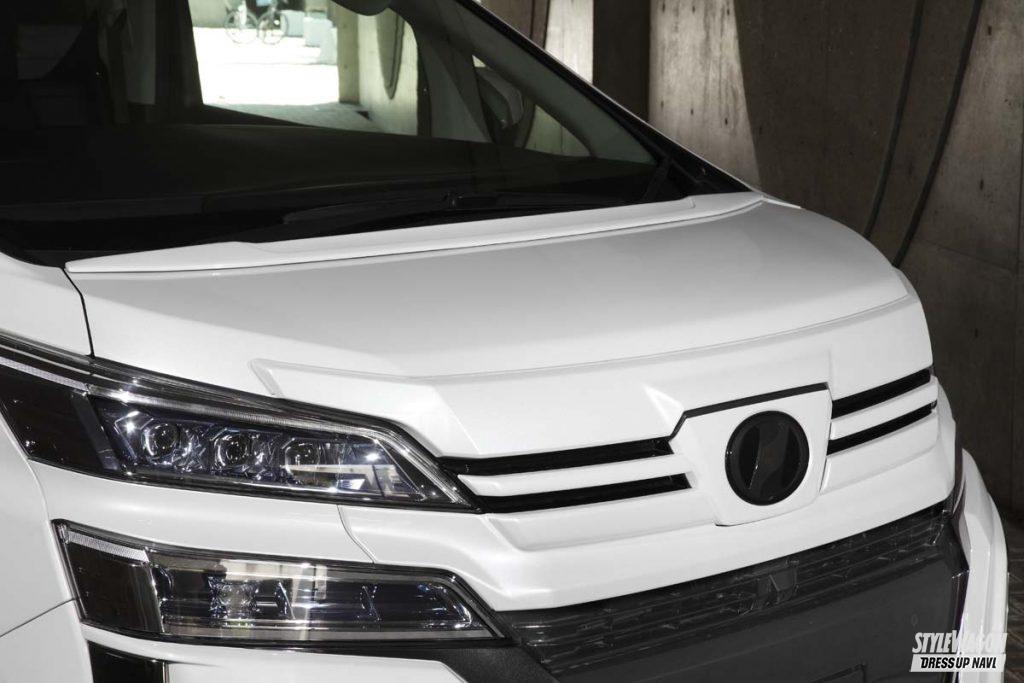 高級Lクラスミニバンのヴェルファイア用としては4種類を揃える。大胆かつ上質感あふれる造形美でブランドのフラッグシップを飾るシンプルハーフな“リチェルカート”、スポーティな雰囲気に磨きをかけたハーフタイプの“デポルテ”、純正ボディラインをリスペクトしつつさりげなくも存在感のある造形美に仕立て上げたフラップエアロの“LSC”、そしてここに紹介する“Belta(ベルタ)”というのがそのラインアップの全貌だ。