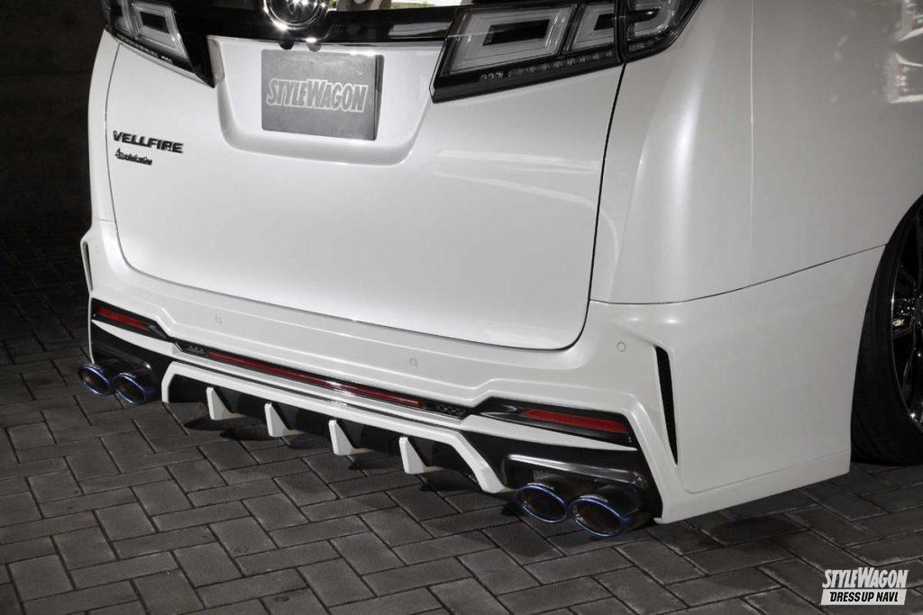 リアへと目を移すと、リアバンパーはV1からV3まで用意されるほどそのラインアップは盤石だ。サイドステップはグレードに合わせて2タイプを用意。ルーフウイングやゲートウイングなどあらゆるパートに、らしさ溢れるエアロパーツを取り揃えているのだ。