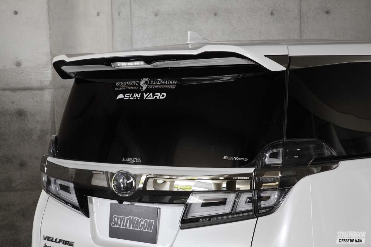 リアへと目を移すと、リアバンパーはV1からV3まで用意されるほどそのラインアップは盤石だ。サイドステップはグレードに合わせて2タイプを用意。ルーフウイングやゲートウイングなどあらゆるパートに、らしさ溢れるエアロパーツを取り揃えているのだ。
