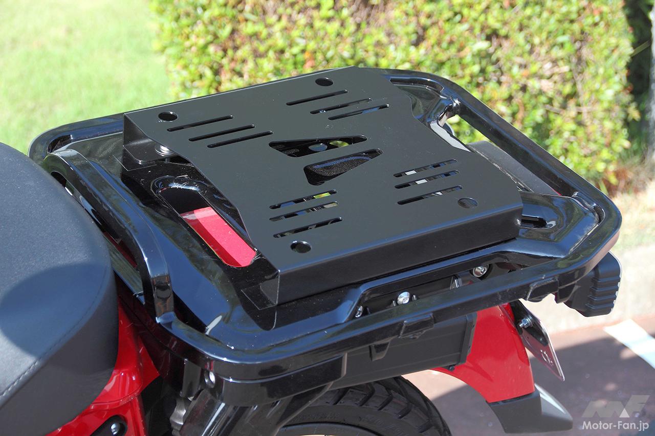 バイクパーツ 純正キャリアの中心にトップケース設置するためのマウントです。|ホンダCT125ハンターカブ専用センターマウントアダプター【クーケースジャパン】【写真・2枚目】 純正リアキャリアの上に製品を取り付けたところ。純正キャリアにボルトオン装着可能。 この画像の記事を読む