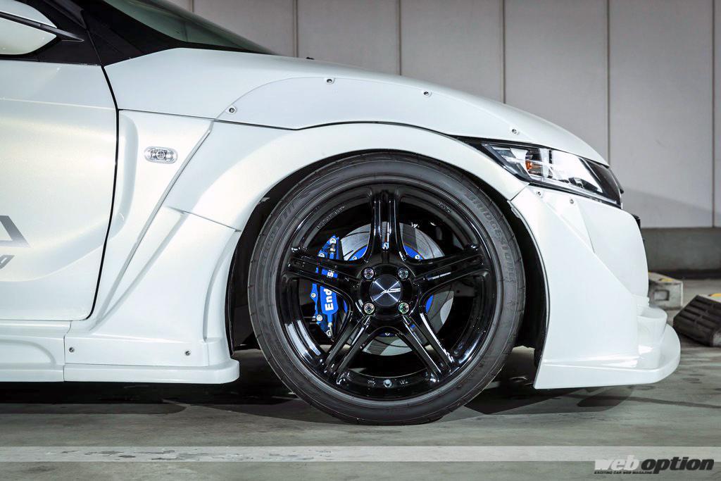 前後バンパーをあえて純正キープとした点も技アリのアイディアで、フルエアロ車にありがちな見た目の重さやゴテゴテ感を徹底的に排除している。なお、フロントアンダースポイラーはセンター部分を緩やかに持ち上げたレーシーな形状を持つ。前方方向への延長幅は95mmとなっている。