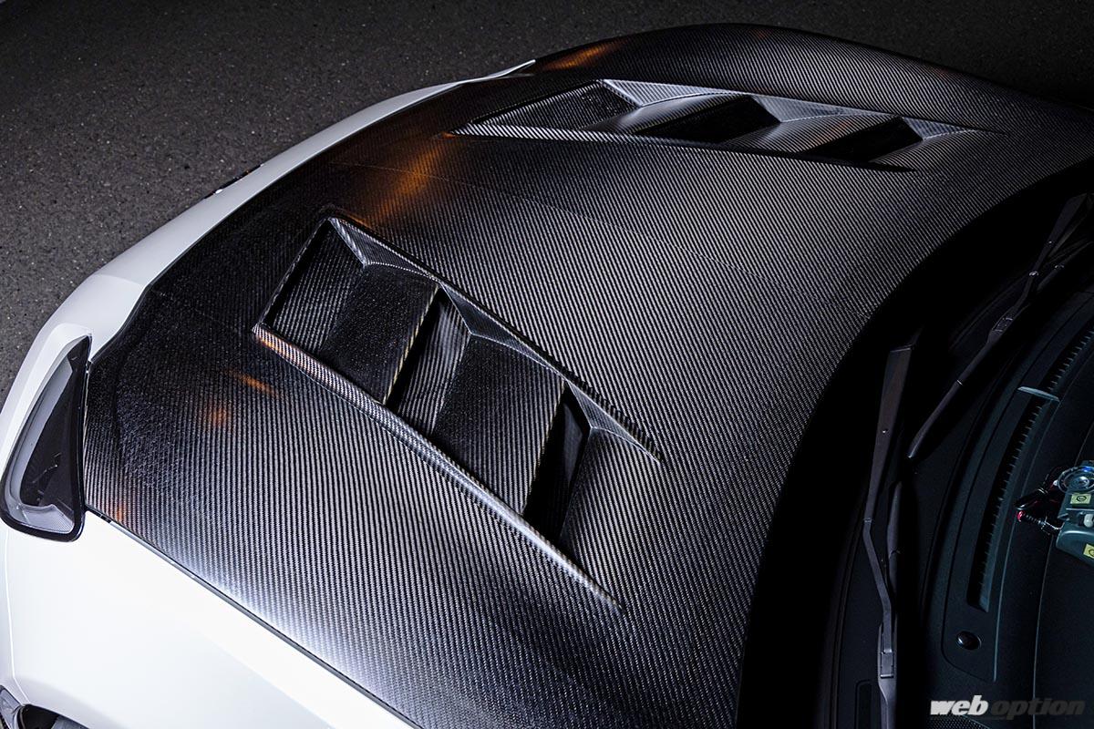 エクステリアはGROWデザインのエアロパーツで武装。大胆なアウトレットダクトが特徴的なカーボンボンネットはスクリーンの製品だ。