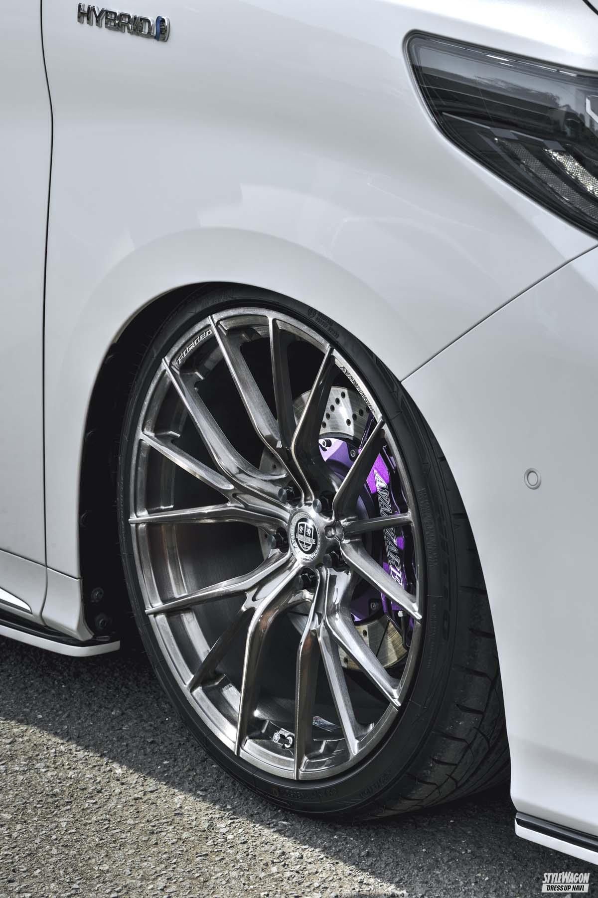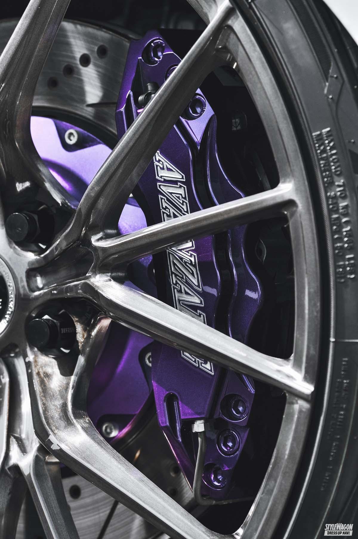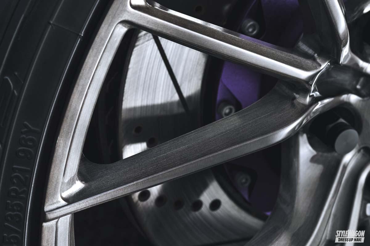 ホイール(カスタム) 華麗なるホイール履きこなし#002! 軽さとデザイン性を持ち合わせた切削鍛造がアツい!【写真・2枚目】 見栄えと乗り心地とをバランスできる21インチサイズ。しかもリムオーバースポーク形状で、実寸よりも大きく見える。 途中までゆるやかに、交点部からは急角度で落とし込まれていくコンケイブフェイス。立体感もバツグンだ。 針のように細い3本のスポークがひと組となった、3×5の独創デザイン。中央の1本のみ低く、立体感もある。 側面部分にはリブラインも加えるなど、鍛造でありながら意匠は繊細。極細だがもちろん強度も折り紙付き。 センターオーナメントのギリギリ隣までスポークが到達するため、足長感は満点。オーナメントはシンプル。 スポーク先端がリムを突き抜ける形状で、視覚的な大口径感は強烈。さり気ないロゴの刻印もステータスだ。 シンプルかつスポーティなフラップ仕様のアデッソとは好相性。エッジの効いた躍動フォルムを演出してくれる。高級車×鍛造は世界的にもトレンドだ。 この画像の記事を読む