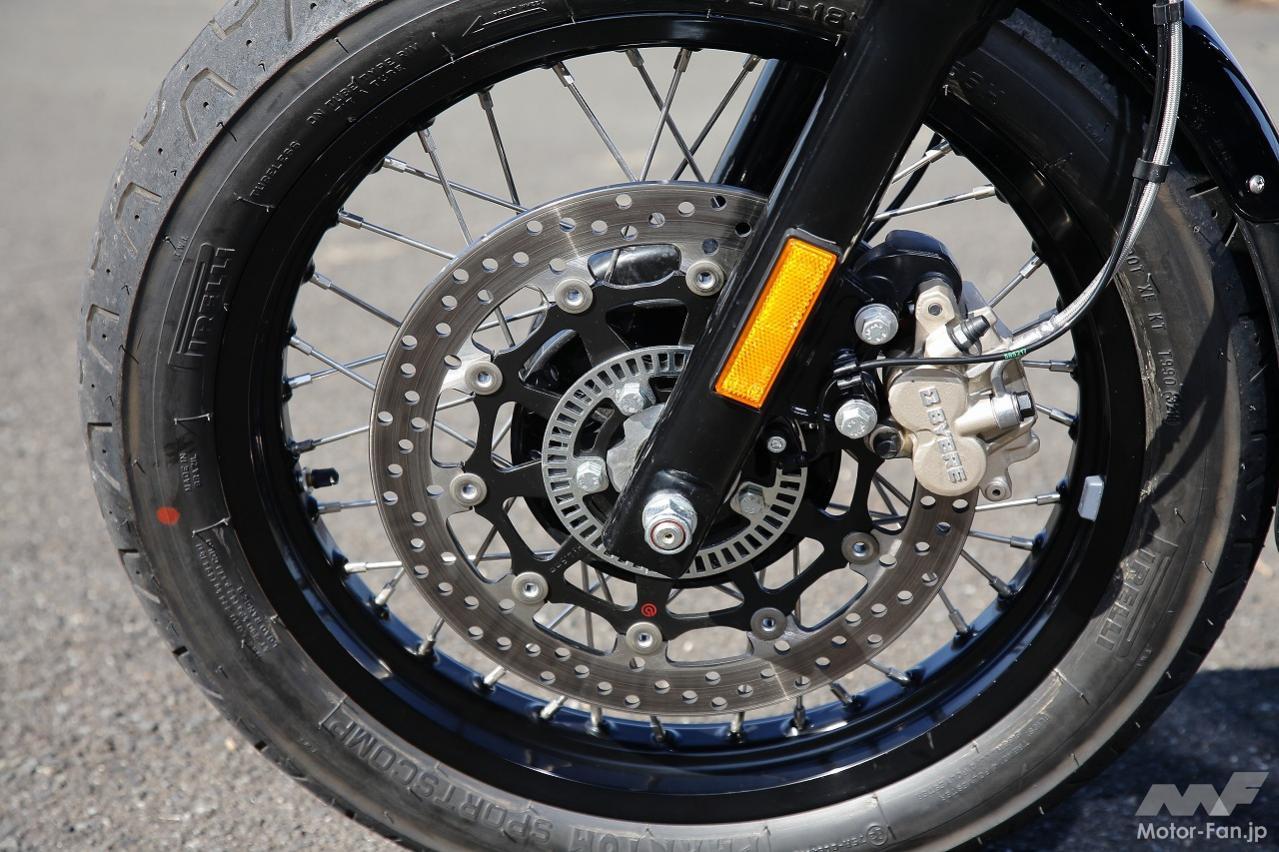 なおエンジンと言ったら、昔ながらの感触を絶妙の塩梅で構築していることも、僕が同社の並列2気筒に感心した要素だ。と言うのも、まずかつてのインターセプター700/750を含めて、1960年代以前に基本設計が行われたミドル以上の並列2気筒は、高回転域で過大な振動を発するのが通例だった。