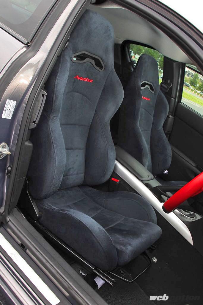 シートはホールド性と快適性を両立したオートエクゼ自慢のリクライニング式スポーツドライビングシートをセットする。