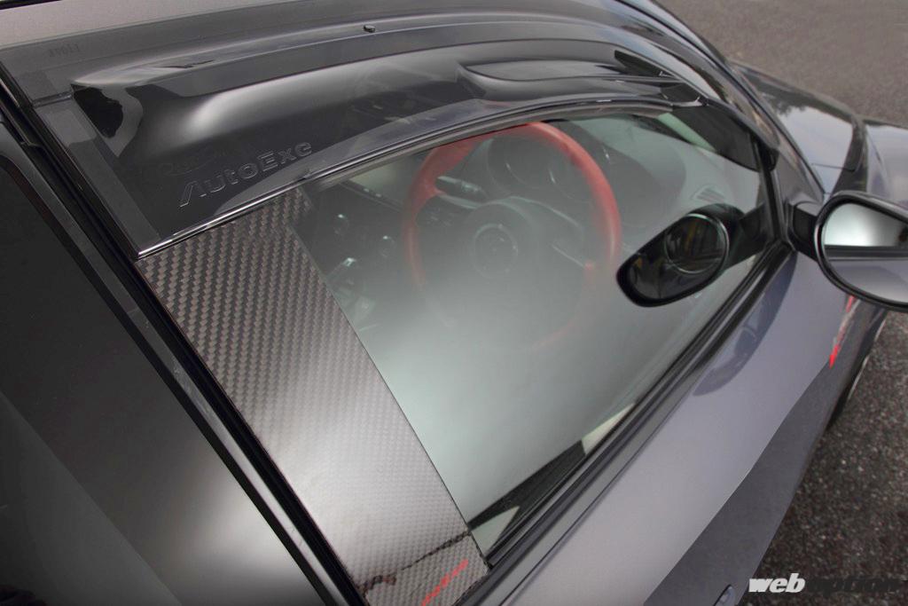 エクステリアパーツで注目したいのはスポーツサイドバイザーだ。これは、窓の隙間から車内の空気を引き抜く効果があるベンチレーション機構付きで、機能性の高いアイテムだ。