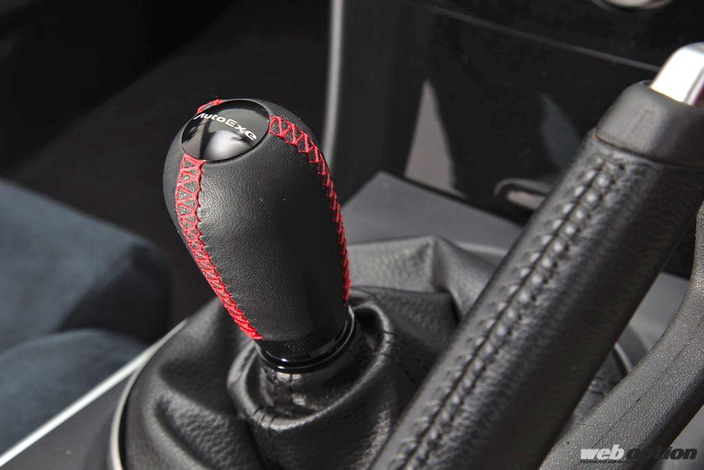 一方の室内は、純正ステアリングに巻くだけで抜群のフィッティングを得られるステアリングレザーラップ、手に馴染むレザーシフトノブを装着。