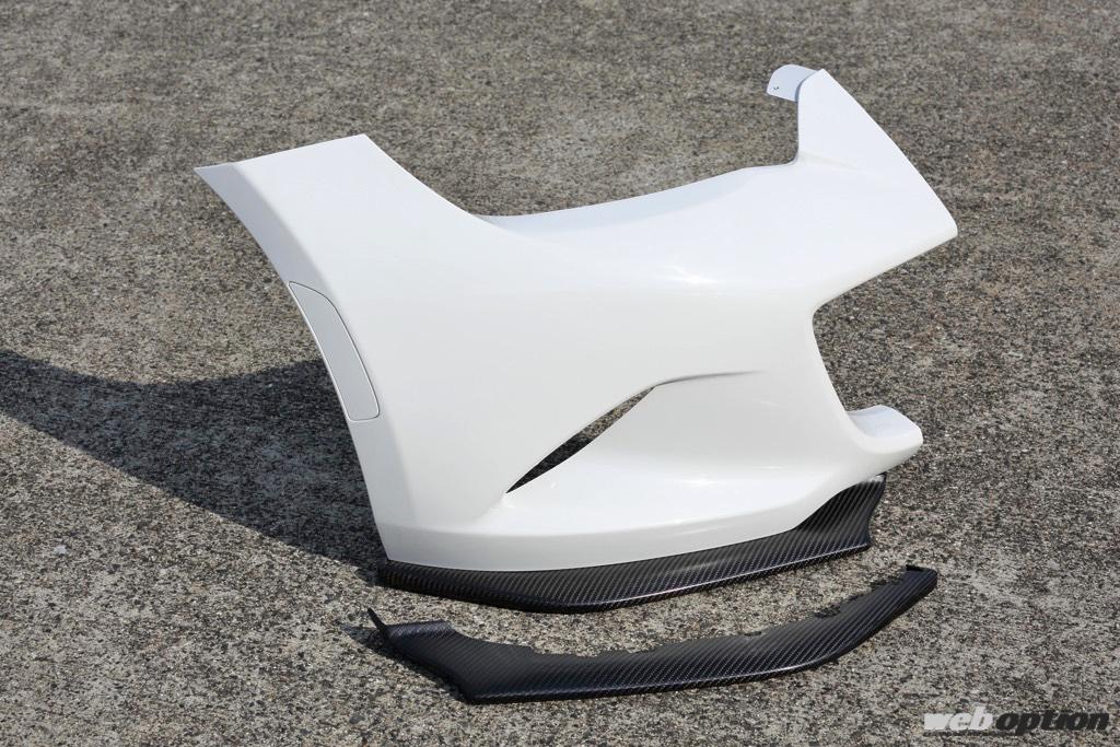 「あくまでもノーマル+αのリファインにこだわりたい」というニーズにも耳を傾け、純正バンパーに対応したリップカバーもラインアップ。FRPとカーボンを用意し、両面テープでの固定であれば、簡単に取り付けられる手軽さが魅力だ。