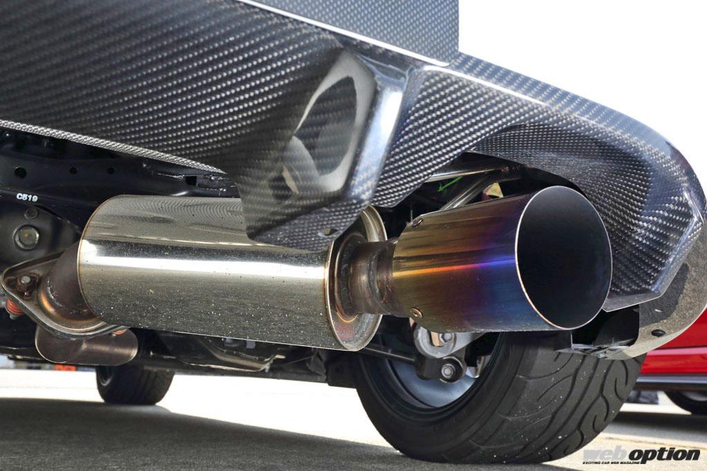 もちろんパワー系にも手が入り、チューニングのファーストステップとしては絶対に外せないマフラーには、シンプルで洗練されたビジュアルのジェントルサウンドマフラーを用意。ハイチューンにも対応できる高効率を求めながら、心地よい音質と音量を導き出している。また、純正の9.3kgから3.3kgにまで軽量化を進め、ロープライスも実現している。