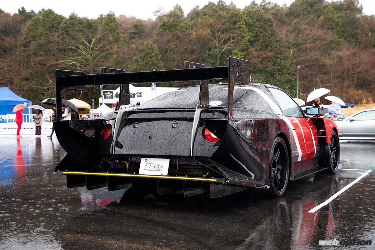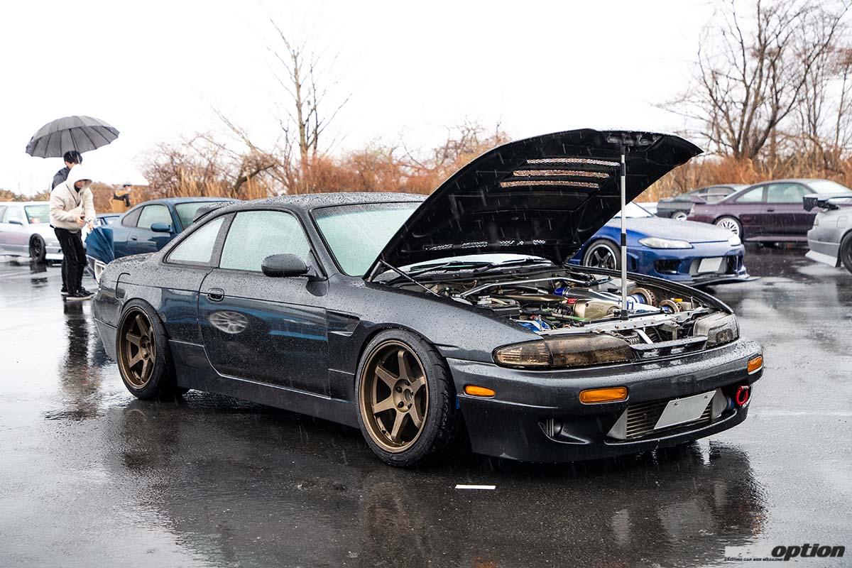 SRヘリテージジャパンは、SRエンジンにゆかりのある車両であれば参加可能だ。そのため、“元SR搭載車”の姿もチラホラ見られたわけだが、このRB26DETT換装仕様のS14シルビア前期もそのうちの一台。前後ともにワイド化されたボディは、増大したパワーを受け止めるための策だろうか。